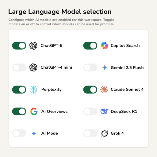 Get a strong understanding of your AI performance across all major LLMs which are used globally.